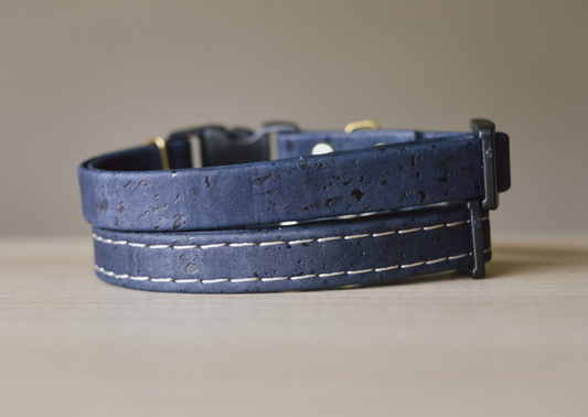Cork Leather Breakaway Cat Collar in Blueberry
